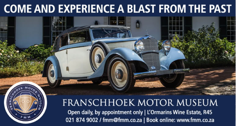 Situated on L’Ormarins Estate, the Franschhoek Motor Museum is one of the gems of the Franschhoek valley and a must for all car enthusiasts. The impressive collection of over 220 vehicles (consisting of bicycles, motorcycles and automobiles) spans the last 100 years. The collection is the best display in South Africa of the evolution of the automobile. The selection of 80 cars on view at any one time is rotated every 6 months. A complimentary San Francisco-style tram transports guests to the neighbouring Anthonij Rupert Estate for wine tasting and lunch. Information: www.fmm.co.za Price: Adults: R90, Pensioners: R70 and Children (3-12 yrs): R50