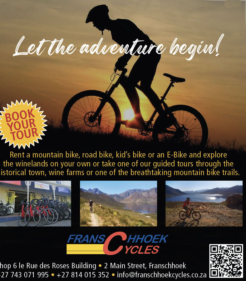 For lovers of horses visiting the Winelands, Equine Sport Centre offers all levels of horse riding, from beginners to the experienced. The centre caters to those who want a memorable trail ride through the scenic vineyards to riding lessons and activities for all levels of expertise.They also offer livery and stabling to private owners. Two of our well known highlights are the sunset trail ride and the unique wine tasting trail ride to Simonsig Winery and back, a perfect pairing for lovers of horses and wine. ESC prides itself on being an equestrian educational and welfare centre that puts its horses first and makes sure visitors have an unforgettable and safe day out. Location: Equine Sport Centre, R304, Stellenbosch Information: www.equinesportcentre.co.za • 082 494 7971 Price: fee