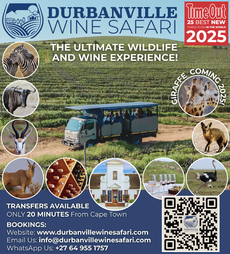 Park your car at one wine farm and jump on the hop-on-hop-off experience which takes you to most of the leading wine farms in Durbanville with routes through the vinyards and backroads. www.durbanvillewinesafari.com